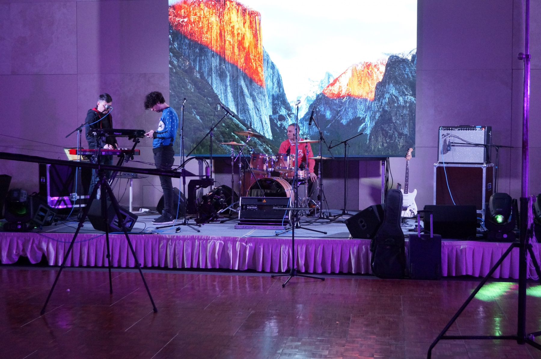Банкетная часть корпоративного мероприятия — это время, когда официальные речи сменяются неформальным общением, а главной задачей становится создание непринужденной и праздничной атмосферы. Для компании «ТехнолигаДевайс» мы организовали плавный переход от фуршета к динамичному вечеру, кульминацией которого стало выступление живой группы. Наша работа была сосредоточена на трех ключевых элементах: фоновом звучании, световом оформлении и создании полноценной концертной площадки.