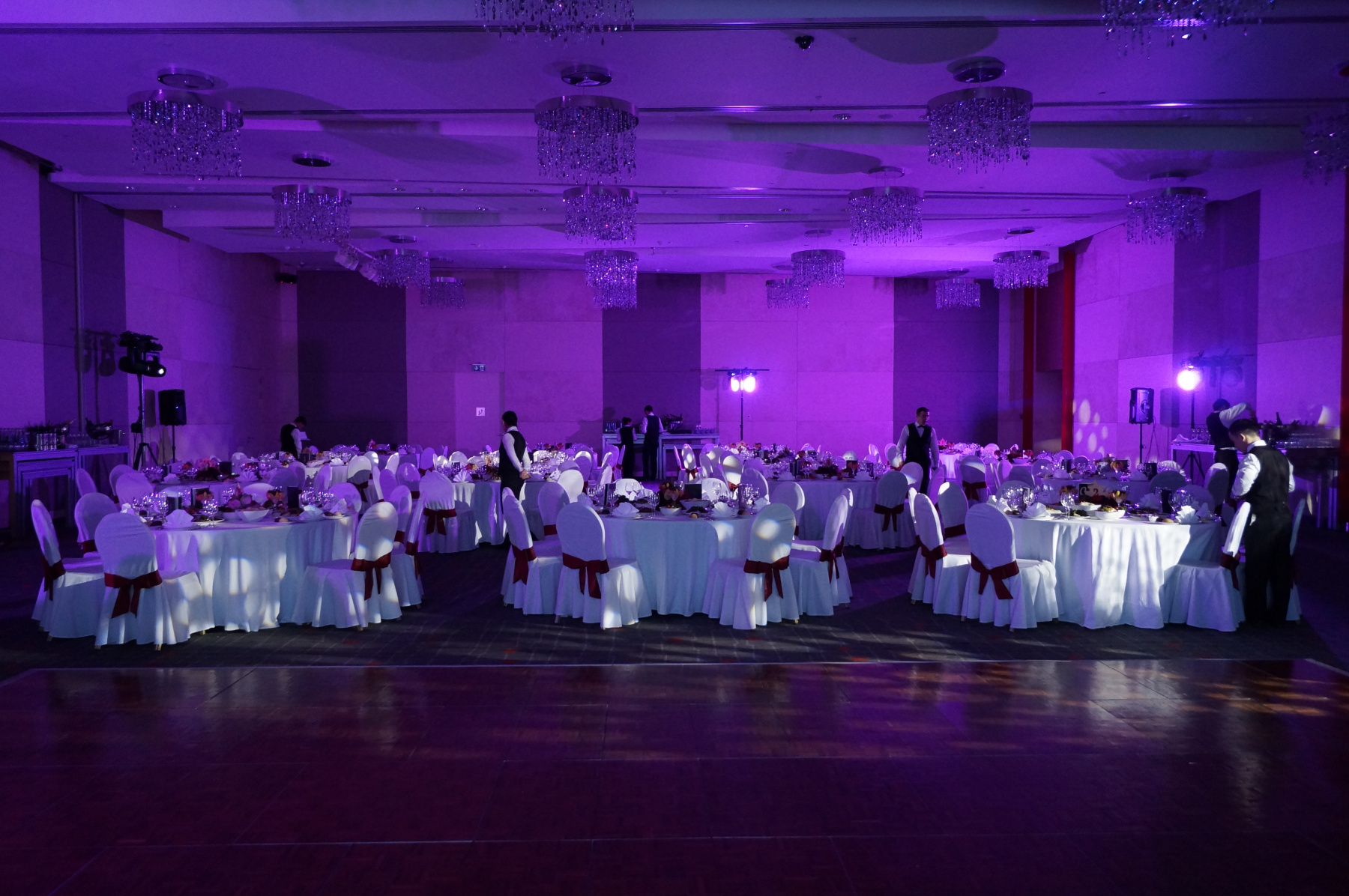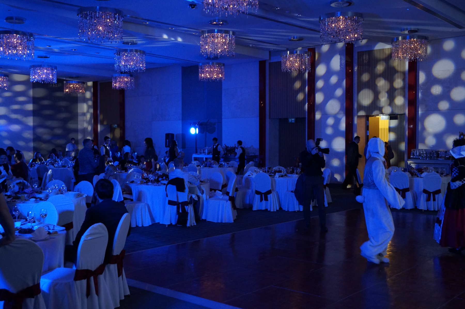 - Световое шоу, синхронизированное с музыкой: В момент начала концерта статичный свет сменился динамичным шоу. Интеллектуальные прожекторы с двигающимися головами, световые пушки и сканеры работали в автоматическом режиме, синхронизированном с ритмом музыки. Это создавало эффект полного погружения и превращало банкетный зал в настоящий концертный холл.