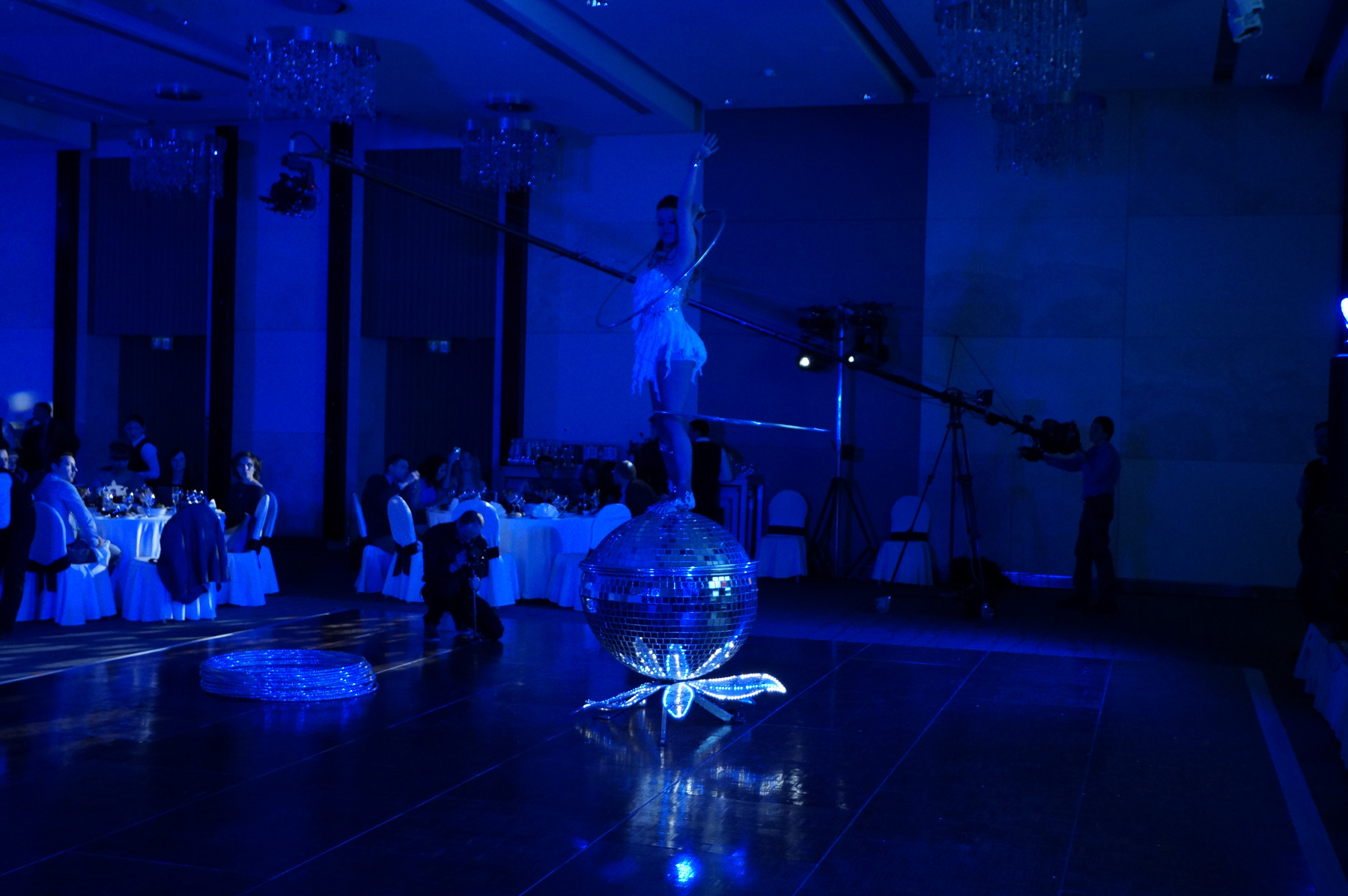 - Динамичное музыкальное сопровождение: Наши специалисты подготовили несколько плейлистов, которые плавно меняли настроение вечера — от спокойной джазовой инструментальной музыки во время ужина к более ритмичным композициям, подготавливающим публику к главному шоу.
