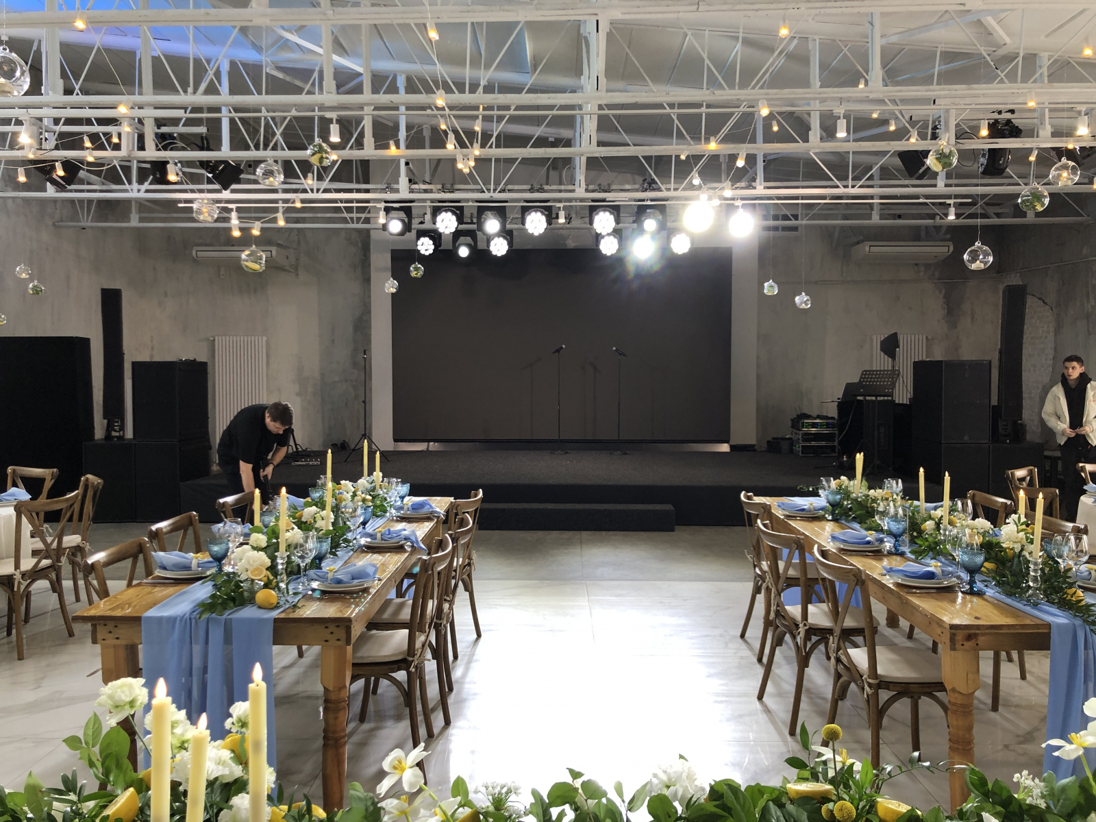 Организация звука, света и сценического оборудования для свадьбы в греческом стиле