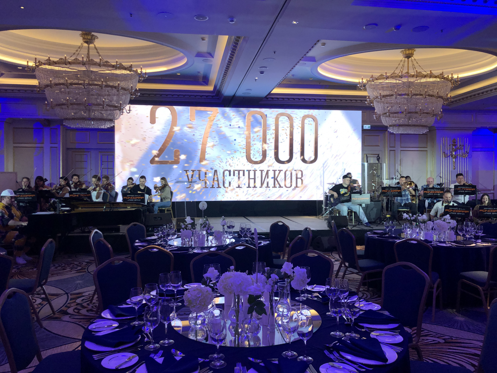 Нельзя не отметить коллектив «Фонограф-Симфо-Джаз» под руководством Сергея Жилина, который на протяжении всего вечера создавал неповторимую атмосферу праздника. В конце мероприятия эта почетная роль была отведена композитору и пианисту Олегу Михайлову.